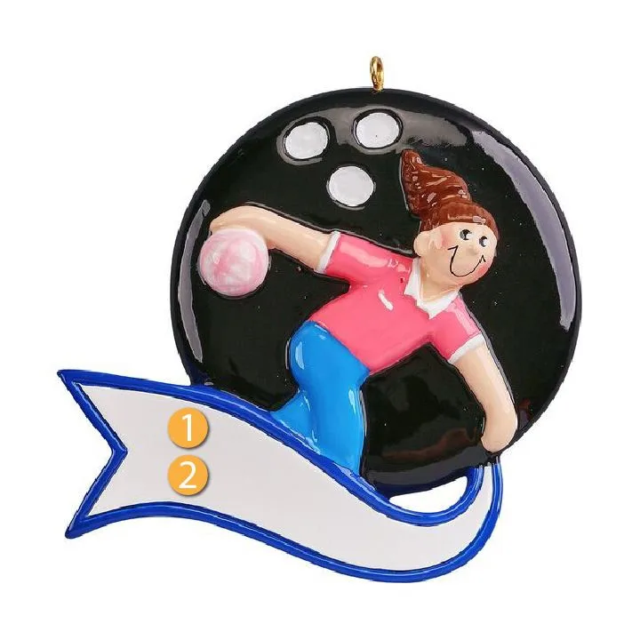 Rudolph & Me Personalized Girl Bowler Ornament would be a great addition to your Christmas, especially for those who love to bowl. This ornament features a bowling ball background with a girl getting ready to roll one down the lane. There are plenty of open spaces for you to write a personalized name or message. For convenience, this ornament has a hoop at the top so you can easily thread a ribbon through it to place on the tree. A great gift idea for friends and family who bowl for fun or competitively!