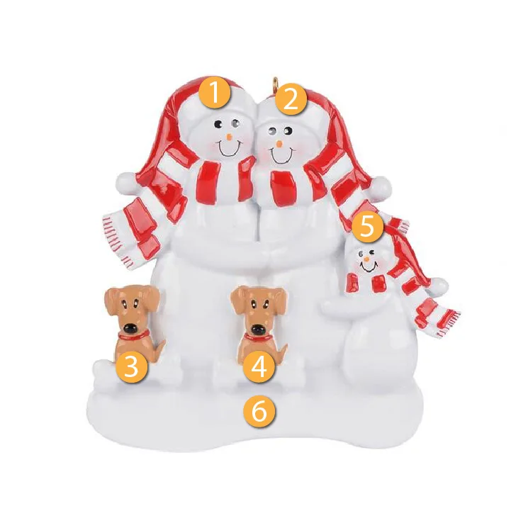 Rudolph & Me Personalized Snow Family of 3 with 2 Tan Dogs Ornament is the perfect decoration for those who want to show some love for their furry friend. This ornament features a snowman family of three embracing with their two tan dogs below them on a snow pile. There are plenty of white spaces that give you a place to write a personalized name or message. Great gift idea for the family of three in your life who owns tan dogs!