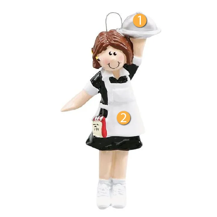 Rudolph & Me Personalized Waitress Ornament would be a great decoration to add to your tree, especially for someone who serves for a living. This ornament features a waitress in her uniform holding up a tray of food in one hand. There are several white spaces that are a spot for you to write a personalized name or message. For convenience, there is a hook at the top of this ornament so you can easily put a ribbon through it to place it on the tree. Great gift idea for a family member or friend who is a restaurant server!
