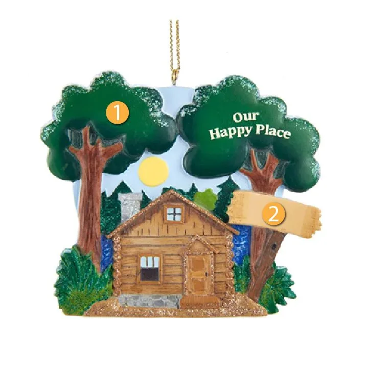 Kurt S. Adler Personalized Lake Cabin Ornament would be a great addition to your Christmas tree, especially if you love the outdoorsy cabin life. This ornament features a log cabin in the middle of a glittery forest with the message, "Our Happy Place," in the trees. A gold ribbon is attached to its top so you can easily hang it. This ornament would also be a great gift idea for those in your life who love the cabin life. Personalization gives you the opportunity to add any sentiment in a unique way so you can create lasting and loving memories.