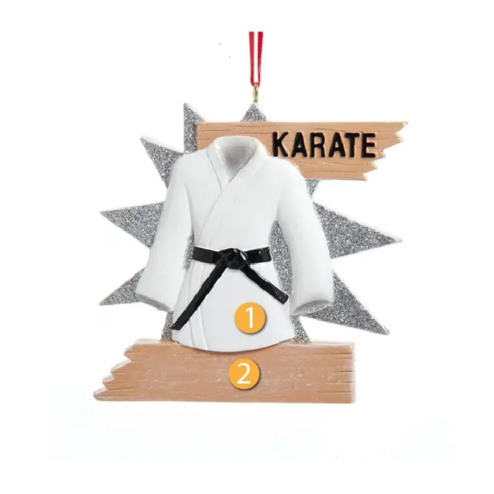 Kurt S. Adler Personalized Karate Ornament would be a great addition to your Christmas tree, especially if you partake in martial arts. This ornament features a black belt karate coat with a silver glittery background. A red ribbon is attached to its top so you can easily hang it. This ornament would also be a great gift idea for those in your life that do karate. Personalization gives you the opportunity to add any sentiment in a unique way so you can create lasting and loving memories.