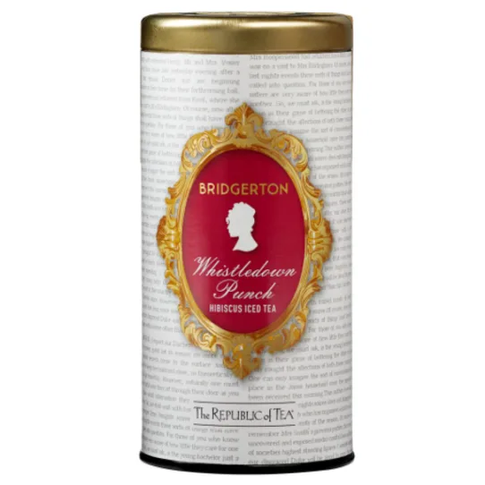 The Republic of Tea Whistledown Punch Hibiscus Iced Tea is a refreshing tea that can be enjoyed any time of day. Or, you can binge watch the new season of Bridgerton while you are sipping on this tea that was inspired by this Netflix series. This naturally caffeinated iced tea features flavors of exotic hibiscus blossoms that mix notes of citrus and pineapple together. Great to indulge in, either hot or cold, during the warm months. Comes in a tea tin.