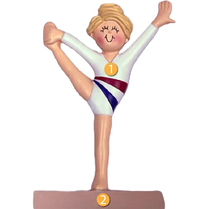 Ornament Central Personalized Blonde Female Gymnast Ornament would be a great addition to your Christmas tree. This ornament features a smiling female on a balance beam in a leotard. This ornament would also be a great gift idea and custom personalization gives you the opportunity to add sentiment in a unique way so you can create lasting and loving memories.