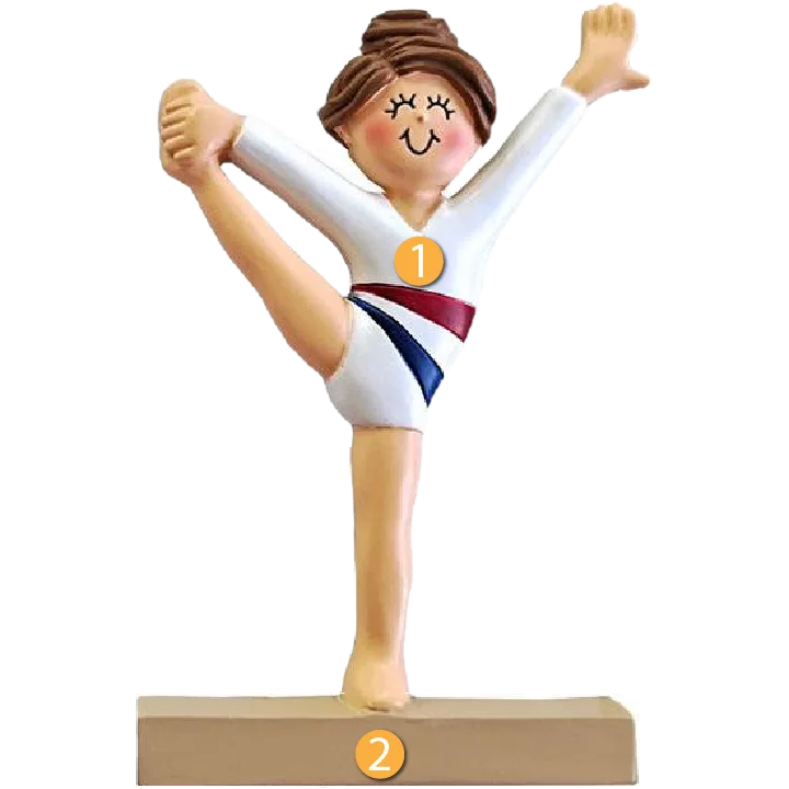 Ornament Central Personalized Brunnette Female Gymnast Ornament would be a great addition to your Christmas tree. This ornament features a smiling female on a balance beam in a leotard. This ornament would also be a great gift idea and custom personalization gives you the opportunity to add sentiment in a unique way so you can create lasting and loving memories.
