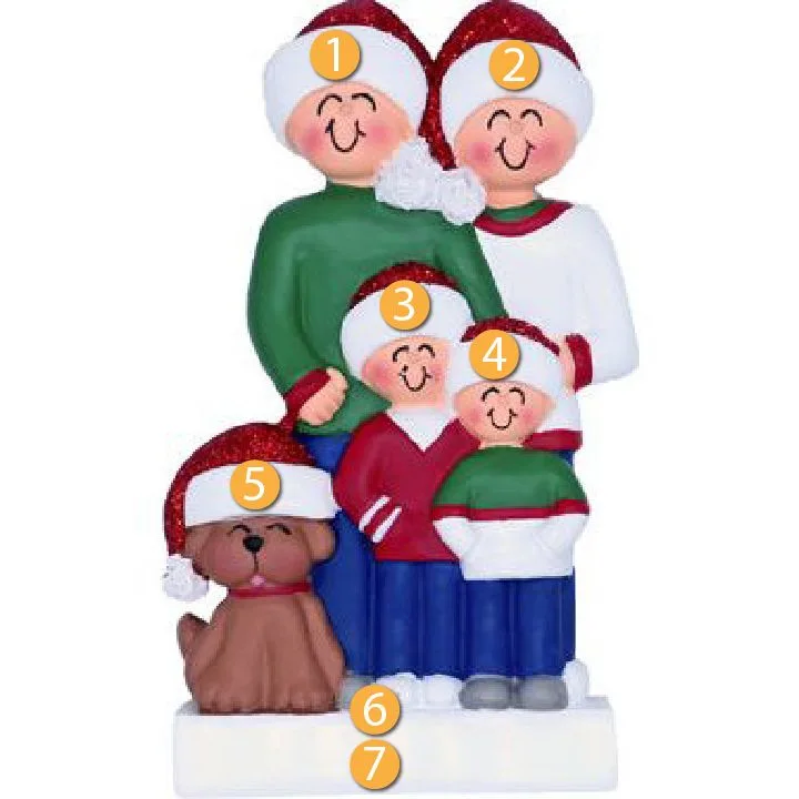 Ornament Central Personalized Family of 4 with Brown Dog Ornament