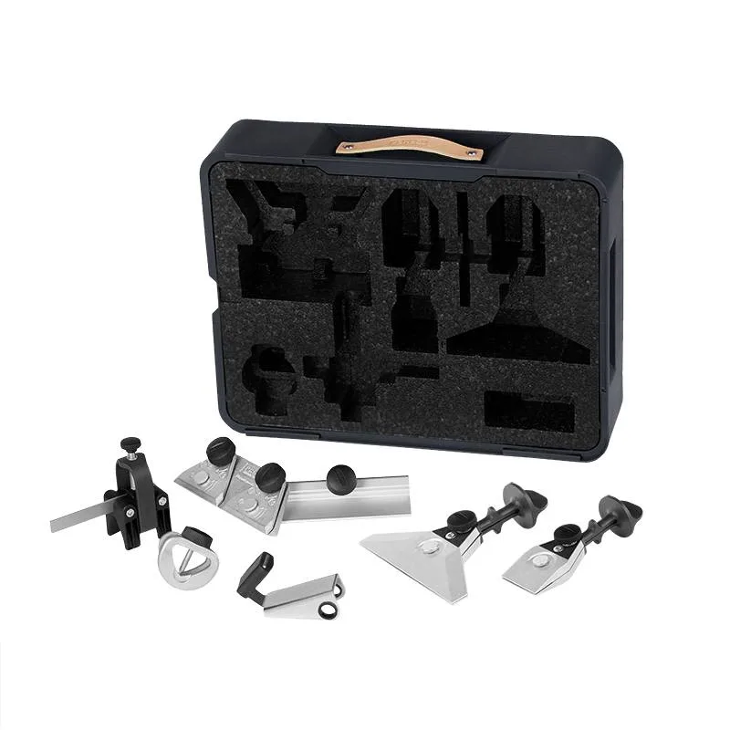 Kit Includes: The KJ-45 Centering Knife Jig; KJ-140 Wide Centering Knife Jig; SVM-00 Small Knife Holder; SVX-150 Scissors Jig; SVA-170 Axe Jig; SVS-38 Short Tool Jig; and a TC-800 Tormek Case.