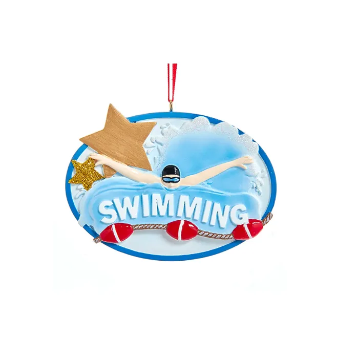 Kurt S. Adler Personalized Star "Swimming" Ornament would be a great addition to your Christmas tree. This ornament features a swimmer with the word "Swimming." A red ribbon is attached to its top so you can easily hang it. This ornament would also be a great gift idea and custom personalization gives you the opportunity to add sentiment in a unique way so you can create lasting and loving memories.