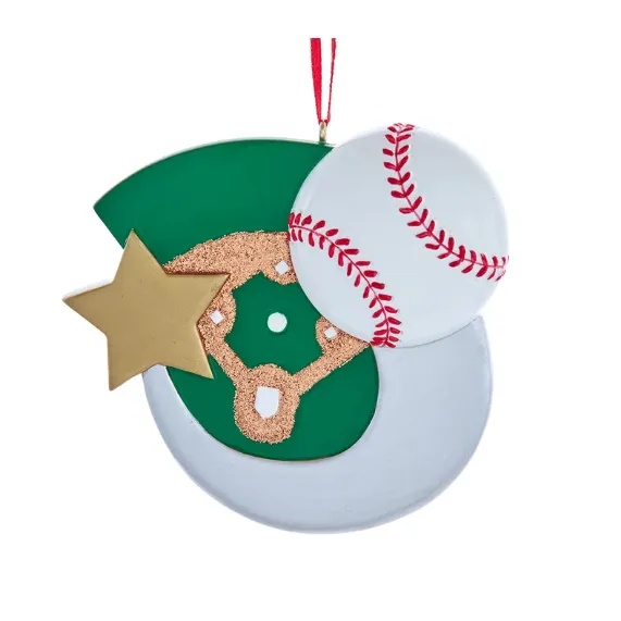 Kurt S. Adler Personalized Baseball with Star Ornament would be a great addition to your Christmas tree. This ornament features a baseball flying out of the stadium. A red ribbon is attached to its top so you can easily hang it. This ornament would also be a great gift idea and custom personalization gives you the opportunity to add sentiment in a unique way so you can create lasting and loving memories.