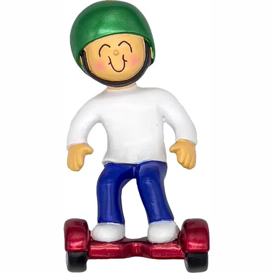 Ornament Central Personalized Male on Hoverboard Ornament would be a great addition to your Christmas tree. This ornament features a smiling male on a red hoverboard with a green helmet. This ornament would also be a great gift idea and custom personalization gives you the opportunity to add sentiment in a unique way so you can create lasting and loving memories.