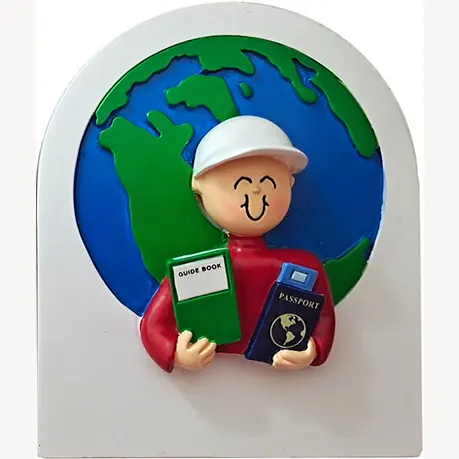 Ornament Central Personalized Male Traveler Ornament would be a great addition to your Christmas tree. This ornament features a smiling male in front of the earth with a passport and guidebook. This ornament would also be a great gift idea and custom personalization gives you the opportunity to add sentiment in a unique way so you can create lasting and loving memories.