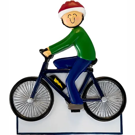 Ornament Central Personalized Male on Electric Bike Ornament would be a great addition to your Christmas tree. This ornament features a smiling male riding a blue electric bike. This ornament would also be a great gift idea and custom personalization gives you the opportunity to add sentiment in a unique way so you can create lasting and loving memories.