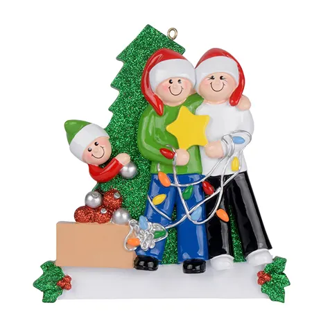 Rudolph & Me Personalized Family of Three Decorating Ornament would be a great addition to your Christmas tree. This ornament features a couple and a kid preparing to decorate their Christmas tree with a box of lights and ornaments. This ornament would also be a great gift idea and custom personalization gives you the opportunity to add sentiment in a unique way so you can create lasting and loving memories.