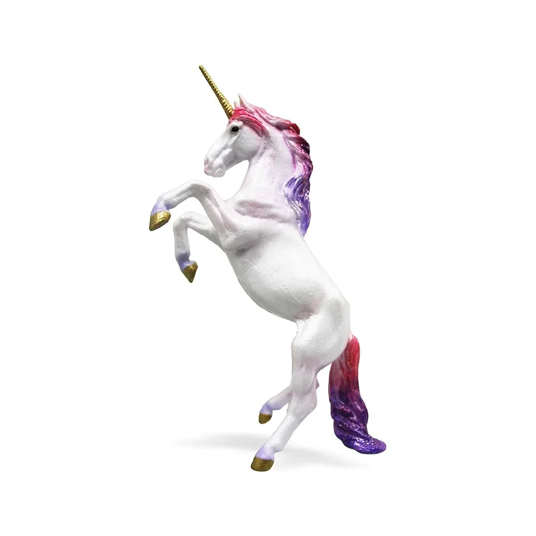Breyer Unicorn Mare Rainbow. In the Middle Ages and Renaissance period, unicorns were commonly described as an extremely wild woodland creature, a symbol of purity and grace. The unicorn mare is in a rearing pose and features red and purple coloring on her mane, tail, and legs. Measures: 4.5"L x 7.1"H. Suitable for ages 3 and up. 1:18 Scale.