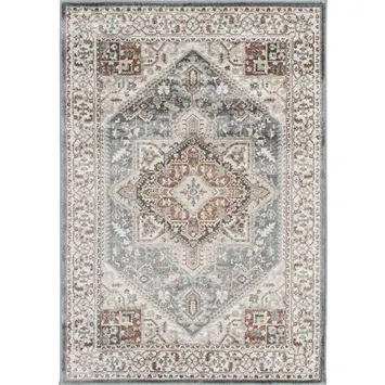 Central Oriental 5' x 7' Landscape Nash Rug features rustic distressing and soft, neutral tones, pairing perfectly with its modern style. The welcoming palette of gray, rose, and harbor that seamlessly complements a wide variety of home decor styles. Whether you're decorating a quiet office space or a lively dining area, this rug is designed to provide high-end style without the high-maintenance headache. Crafted with 100% polyester faux fur, you can enjoy irresistible softness underfoot without fear of staining or fading, even in busy homes with pets, children, or frequent guests. The machine-made rug features a digitally printed design for exceptionally crisp details and rich colors, while the thick cotton canvas backing adds stability.