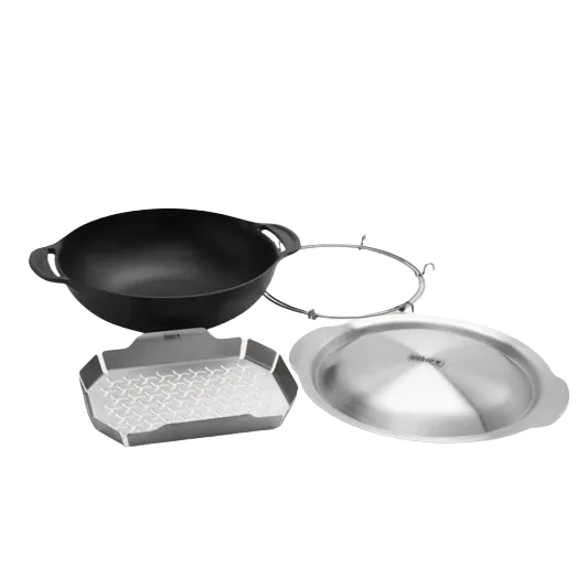 Expand your culinary horizons with the WEBER CRAFTED Outdoor Kitchen Collection. This versatile accessory includes a wok and steamer basket, perfect for making everything from stir-fry and fried rice to steamed vegetables and dumplings. To utilize this innovative tool, a WEBER CRAFTED compatible grill, frame, and cooking grates are required. It can also be adapted for use with grills that have Gourmet BBQ System cooking grates. Elevate your grilling experience by integrating the art of wok cooking and steaming into your outdoor meals.