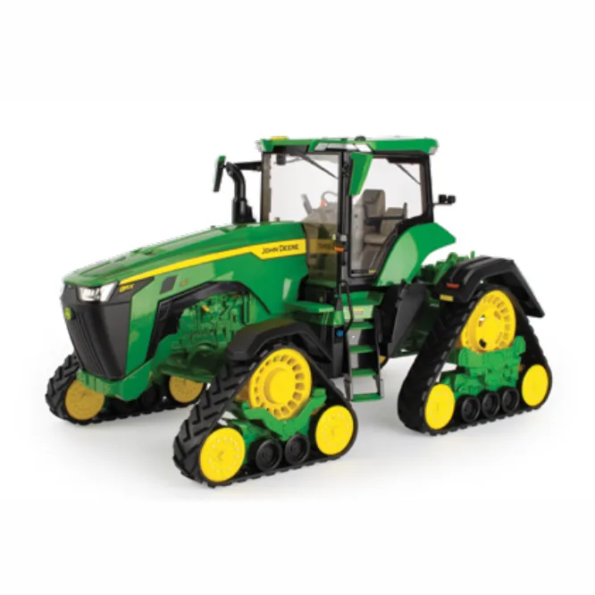 Explore the durability and advanced engineering of the ERTL 1:16 John Deere 8RX 340 Tractor, a model that stands as a pinnacle of modern agricultural machinery. This replica is constructed with a die-cast body and track frames, ensuring a robust and detailed build. It features 18" front tracks and rear tracks set at a 120" tread width, designed for optimal stability and reduced soil compaction. The model includes an opening hood and cab door, allowing collectors to admire the intricately detailed interior through clear cab windows. Additional features such as mirrors and lights add to the realism of this collectible. Special dusty painted chase units are randomly inserted among regular units, offering a unique collectible variation for enthusiasts.