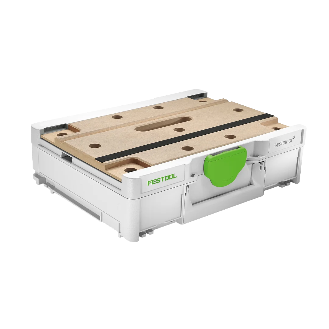 Fast Fixes Anywhere: Need to saw, drill, or sand on site? The Systainer³ MFT gives you a solid work surface wherever you are. Just set it down, clamp your piece, and get to work—no setup hassle. Holds Tight, Works Right: The top has holes and grooves to hold all kinds of materials—even round rods and pipes. Use clamps or let the built-in foam strip grip your workpiece without clamping. Smart Storage Built In: Store your tools and accessories inside the Systainer to keep everything neat and ready for the next job. Need more space? Stack another Systainer of the same height to support longer pieces. It fits right in with the full Festool Systainer system—easy to carry, connect, and move.
