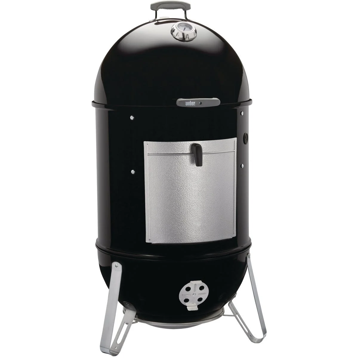 Weber Smokey Mountain Vertical Charcoal Cooker, 22 in., is designed for slow-cooked, fall-off-the-bone barbecue perfection. With two spacious plated steel cooking grates, this smoker can handle large cuts of meat or a full rack of ribs with ease. The porcelain-enameled lid, bowl, and center section ensure excellent heat retention and resist rust and peeling for long-lasting performance. Easily control the temperature with four rust-resistant aluminum dampers and monitor the heat with the built-in lid thermometer and silicone temperature grommet. Adding charcoal or wood is simple, thanks to the removable fuel door, making it perfect for low-and-slow smoking enthusiasts.