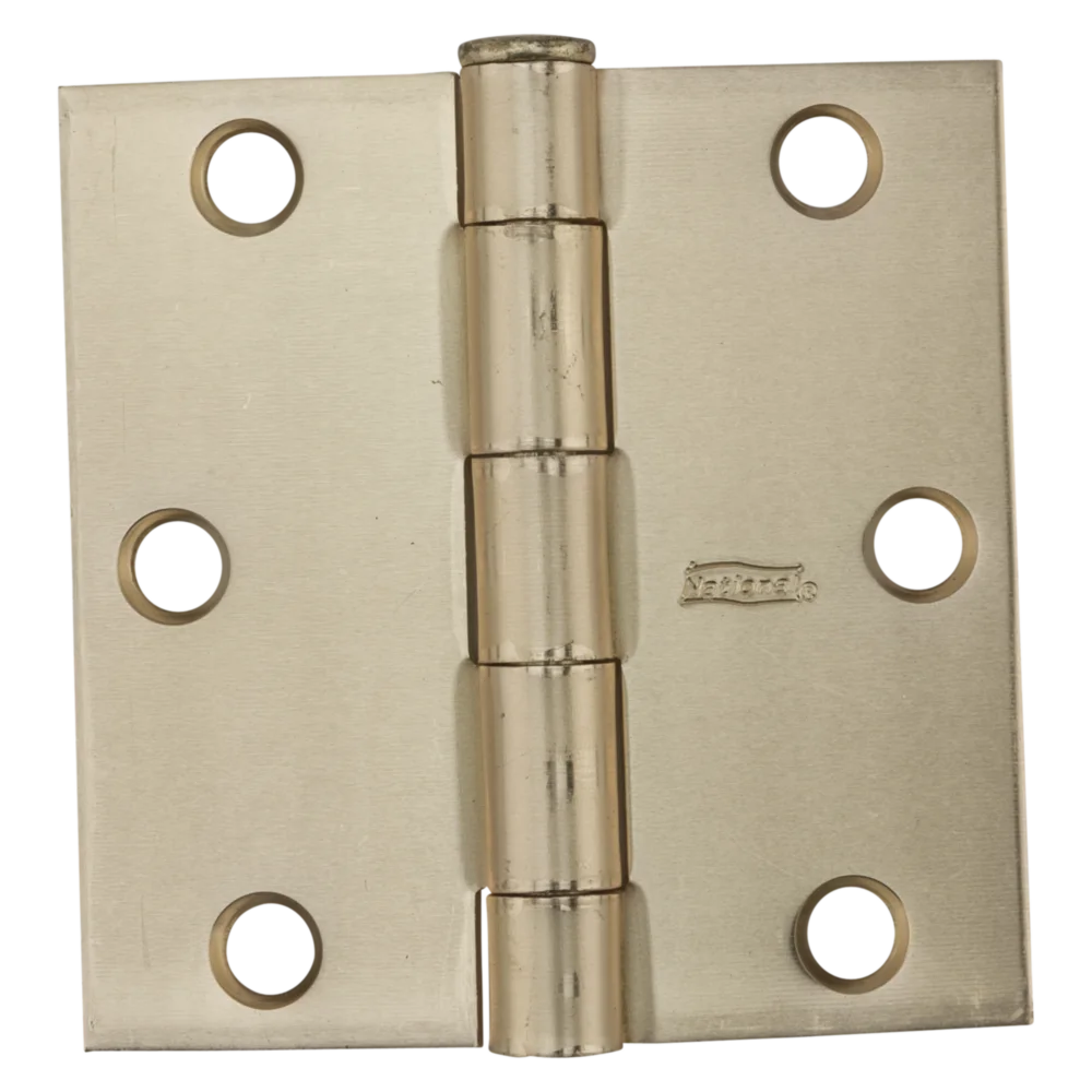 Square corner residential door hinge (National Model SPB512) for use on interior residential doors. Square corner. Removable pin for quick and easy installation. Screws included. Steel material.