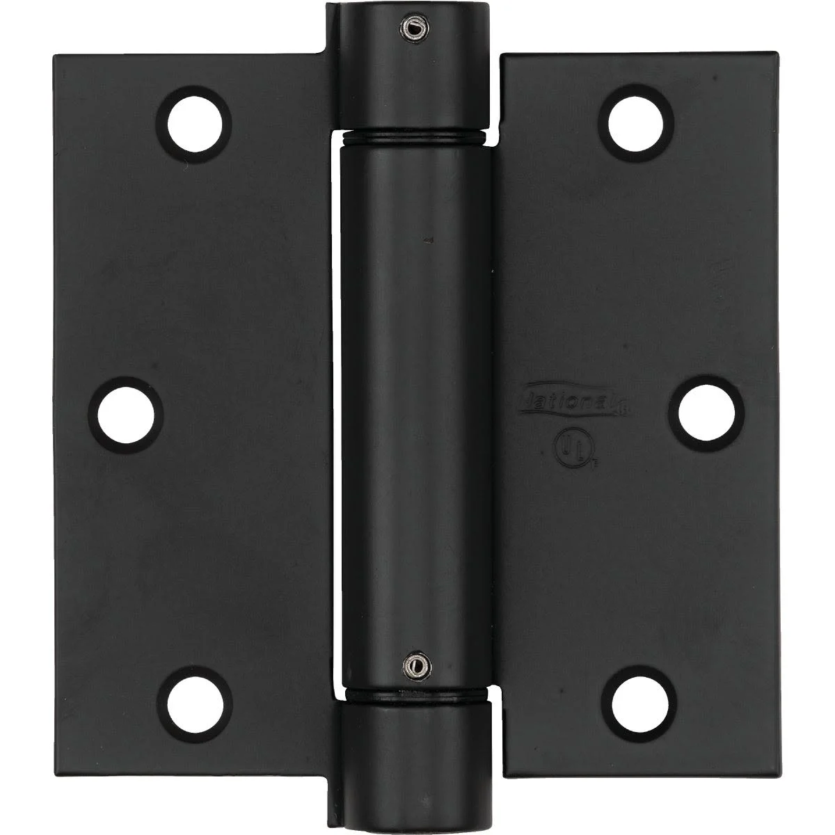National 3.5 In. Square Oil Rubbed Bronze Spring Door Hinge is a versatile spring door hinge designed for various applications. It features adjustable tension, making it suitable for a wide range of uses, including residential, commercial, industrial, and institutional applications. This hinge is constructed from cold-rolled steel for durability and reliability. Additionally, it is listed for fire-rated openings and has an adjustable closing speed. With its square corners, it provides a modern and clean appearance, making it a versatile and durable hardware component for various door installations.