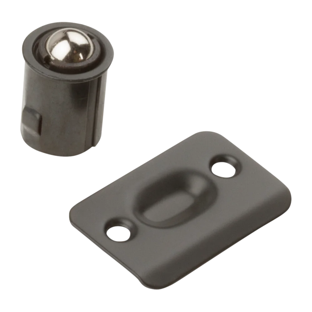 National catalog model No. 1440 drive-in ball catch. For use in wood, metal closet or cabinet doors. Adjustable tension. Includes fasteners for quick and easy installation. Steel material.