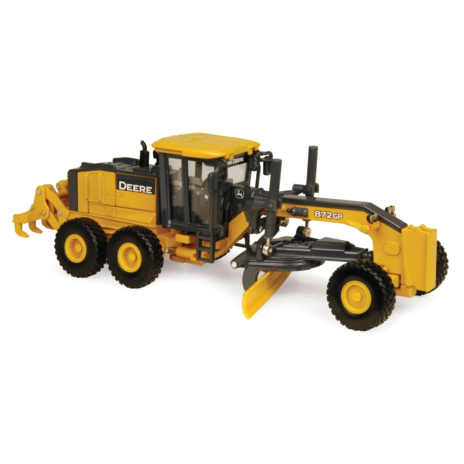 An Ertl Prestige Series John Deere 1:50 Scale 872GP Grader. Made from die cast metal, the Grader is approximately 8-1/2 inches long by 3 inches wide x 2-1/2 inches high (to the top of cab). Includes rolling rubber wheels, working steering, adjustable blade, and other moving parts. Prestige Series toys are for display only. Recommended for ages 14 and up. An Officially Licensed John Deere Product. Imported