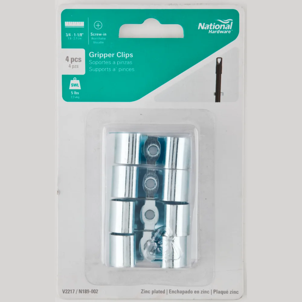 National Catalog 2217BC. Storage hooks. Holds brooms, mops, lawn tools, and many other items with handles 3/4" to 1-1/8" diameter. Rust-resistant finish. 4 pack with screws included.