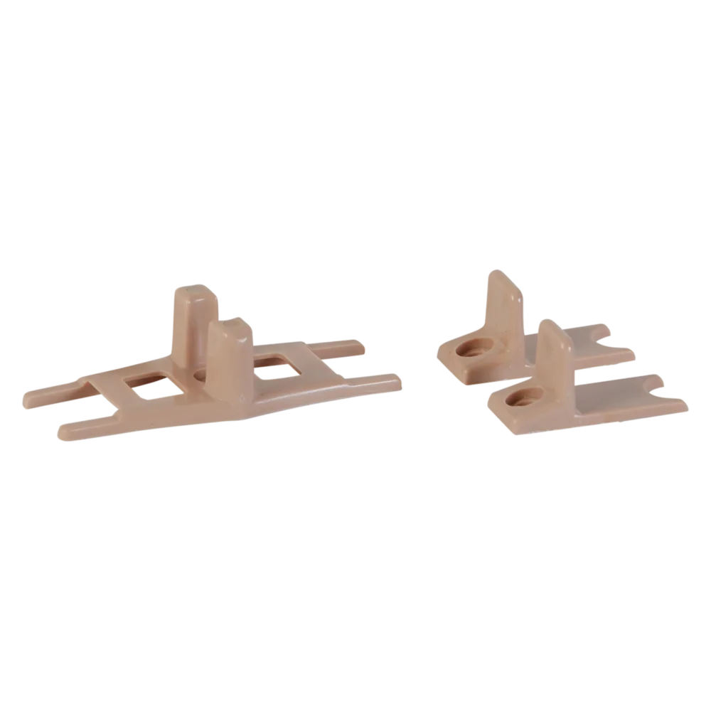 Adjustable 3-piece door guide for 3/4" to 1-3/8" bypassing doors. Use cardboard shim to insure proper spacing of 2 side sections. Screws included.
