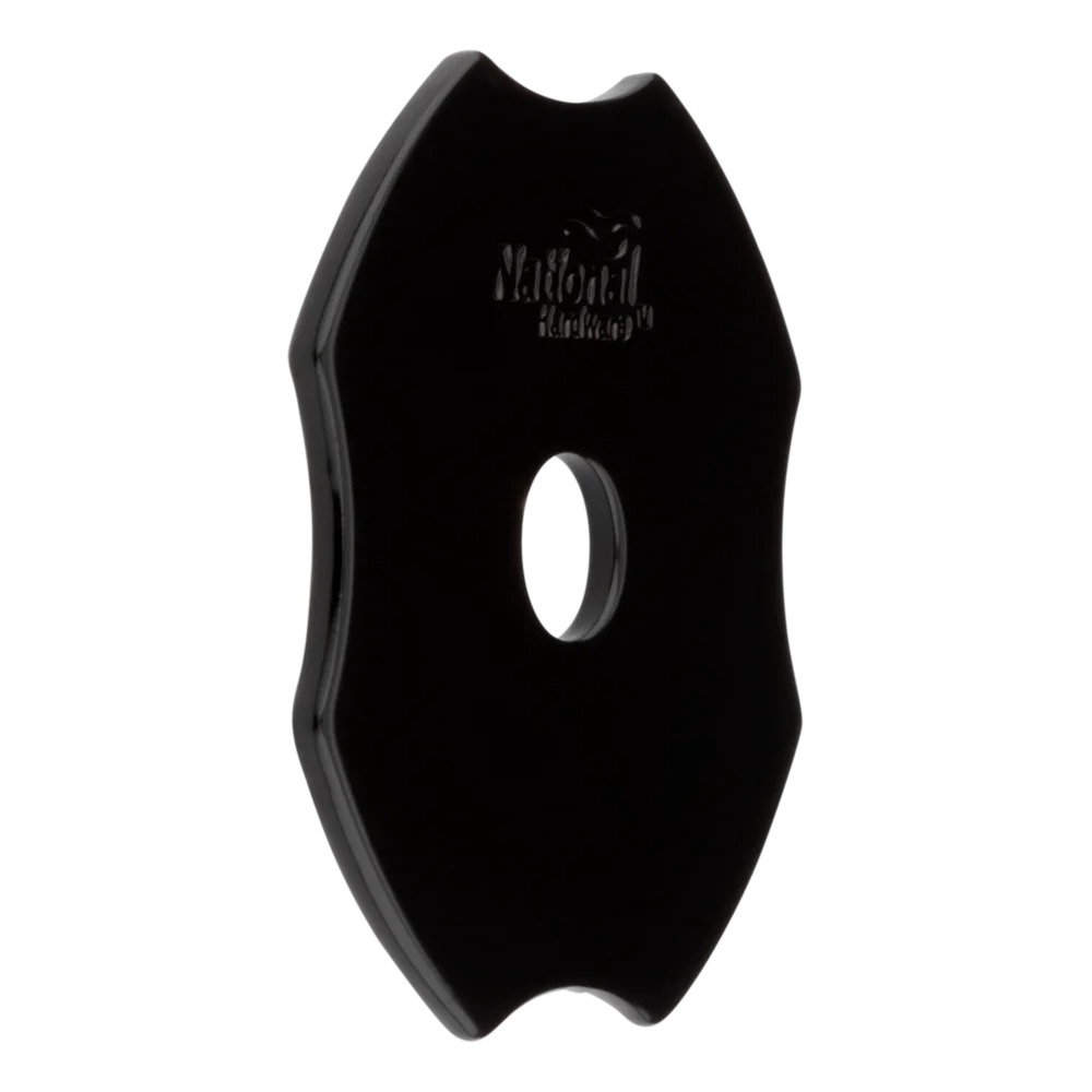 Use with National Hardware's Heavy Duty Outdoor Decorative Collections. Pre-drilled holes allow for easy installation. Hartley Collection, emphasizes curves and beautiful finishing touches. Finished with a black powder coat, for protection from corrosion. Mounting hardware not included. For decorative use only. 3" with 9/16" Hole.