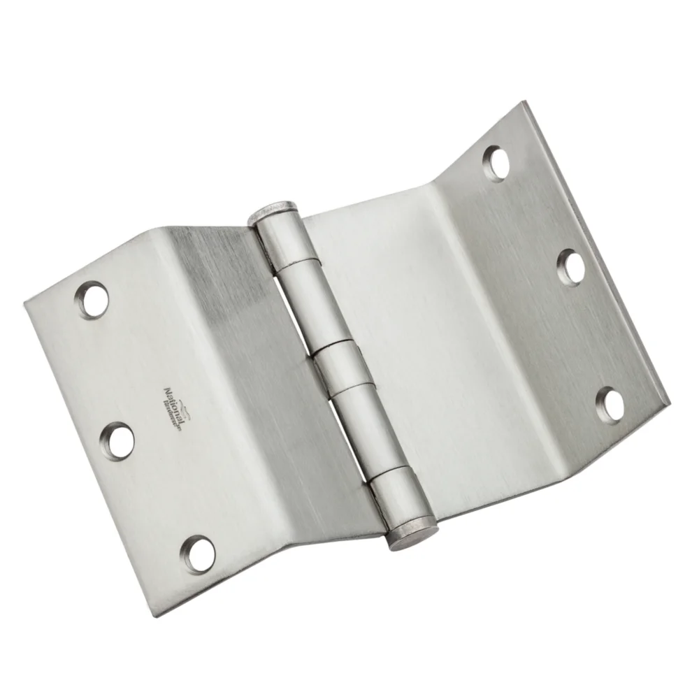Manufactured from hot rolled steel. Ribbed design for extra strength. Includes rigid non-swivel staple. Designed to swing doors completely clear of opening when door is opened 90 degrees. Ideal for doors required to meet barrier-free codes. For full mortise application on square edge doors.