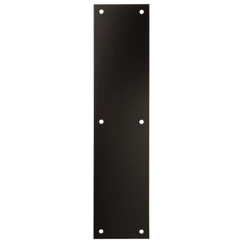 Designed to protect the surface and cover holes on swinging doors, especially in high traffic areas. Anodized surface for extra durability. Plastic cover to protect finish during installation. Mounting screws included. Manufactured of aluminum.