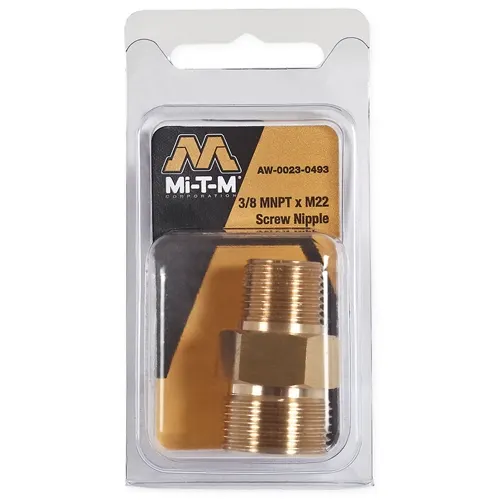 3/8 inch male nominal pipe thread x M22, pressure washer screw nipple. This product adds a great value. Product is highly durable and very easy to use.