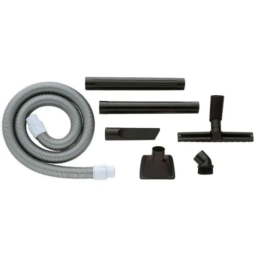 Set Includes: An 8.25 Ft. Non-Antistatic Hose; two Extension Tubes; a Workshop Floor Nozzle; a Square Nozzle; a Large Crevice Nozzle; and a Suction Brush. Comes in a cardboard box.