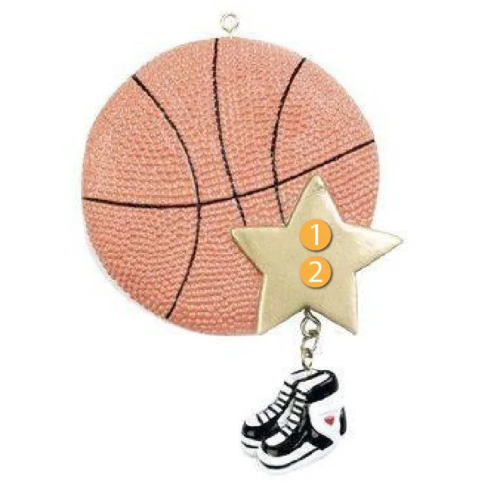 Rudolph & Me Personalized Basketball Star Ornament is a great decoration to add to your tree for someone who enjoys to play this game. This ornament features a basketball with a star accent and hanging shoes. The star can act as a white space for you to write a personalized name or message. Great gift idea for a family member or friend who is a basketball star!