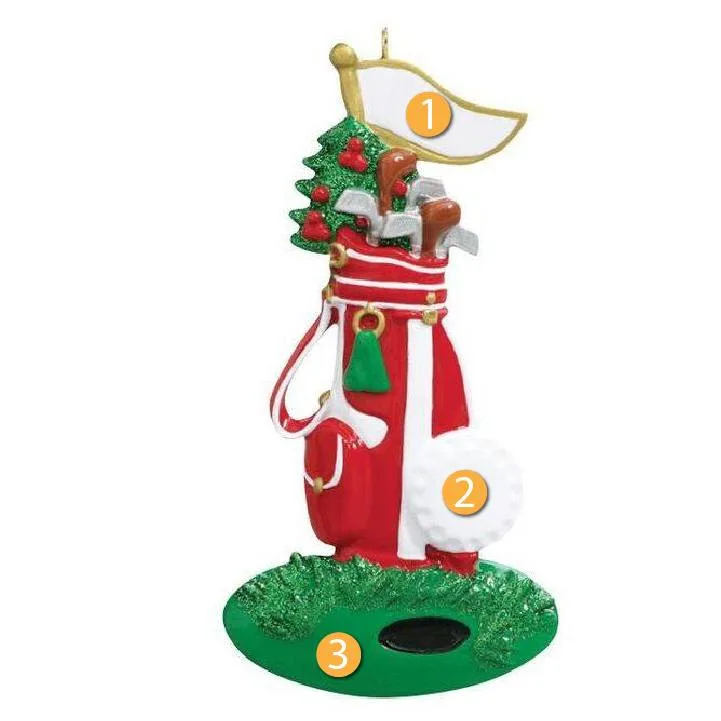Rudolph & Me Personalized Golfer Ornament is a great decoration to add to your tree for someone who enjoys to play this game. This ornament features a festive golf bag accented with holly on the green. The golf ball and flag can act as a white space for you to write a personalized name or message. Great gift idea for a family member or friend who loves to golf!
