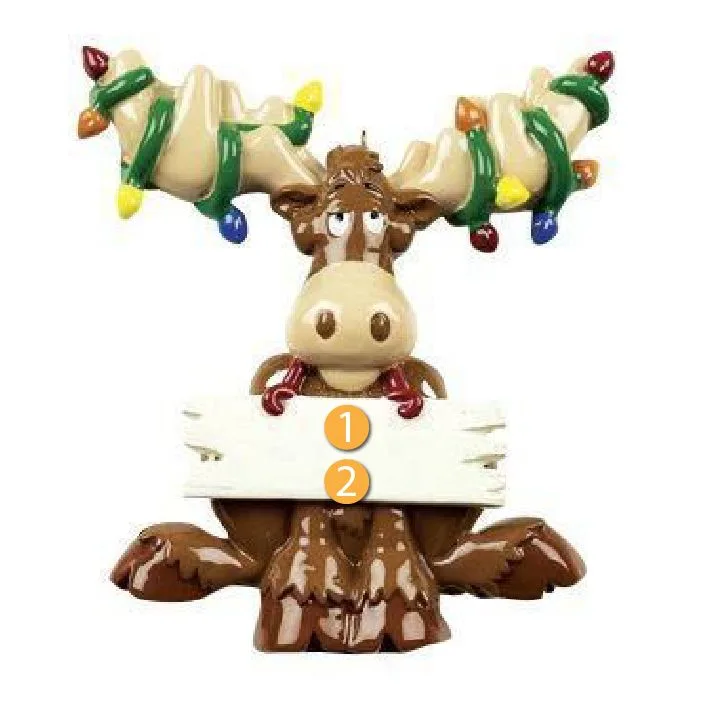 Rudolph & Me Personalized Christmas Moose Ornament is a fun decoration to add to your tree to get everyone ready for the Christmas season. This ornament features a moose decorated with festive Christmas lights holding a wood board. The wood plank gives you an area to write a personalized message or name.
