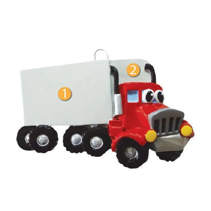 Rudolph & Me Personalized Semi Truck Ornament is a great decoration to add to your tree if your children enjoy playing with them. This ornament features a red semi truck ready to go to work with a friendly face. The open spaces give you a place to write a personalized message or name. Perfect gift for a little one who loves to play with semi trucks!