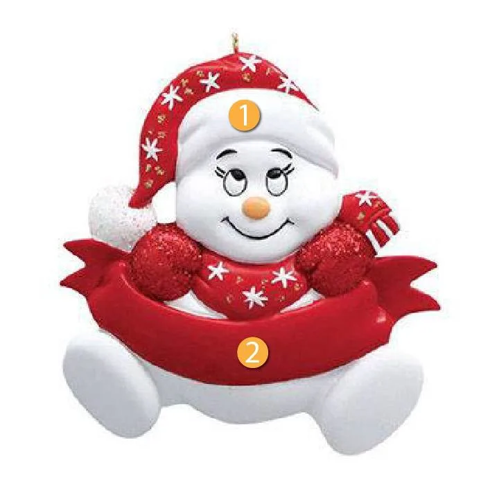 Rudolph & Me Personalized Red Snowbaby Ornament is a great decoration to add to your tree to celebrate your child's first Christmas. This ornament features a snowbaby in red accents and a matching starry hat and scarf with a ribbon across its body. The red space on the ribbon gives you an area to write a personalized message or name. Great gift idea for a loved one or friend who recently gave birth and is celebrating their first Christmas together!