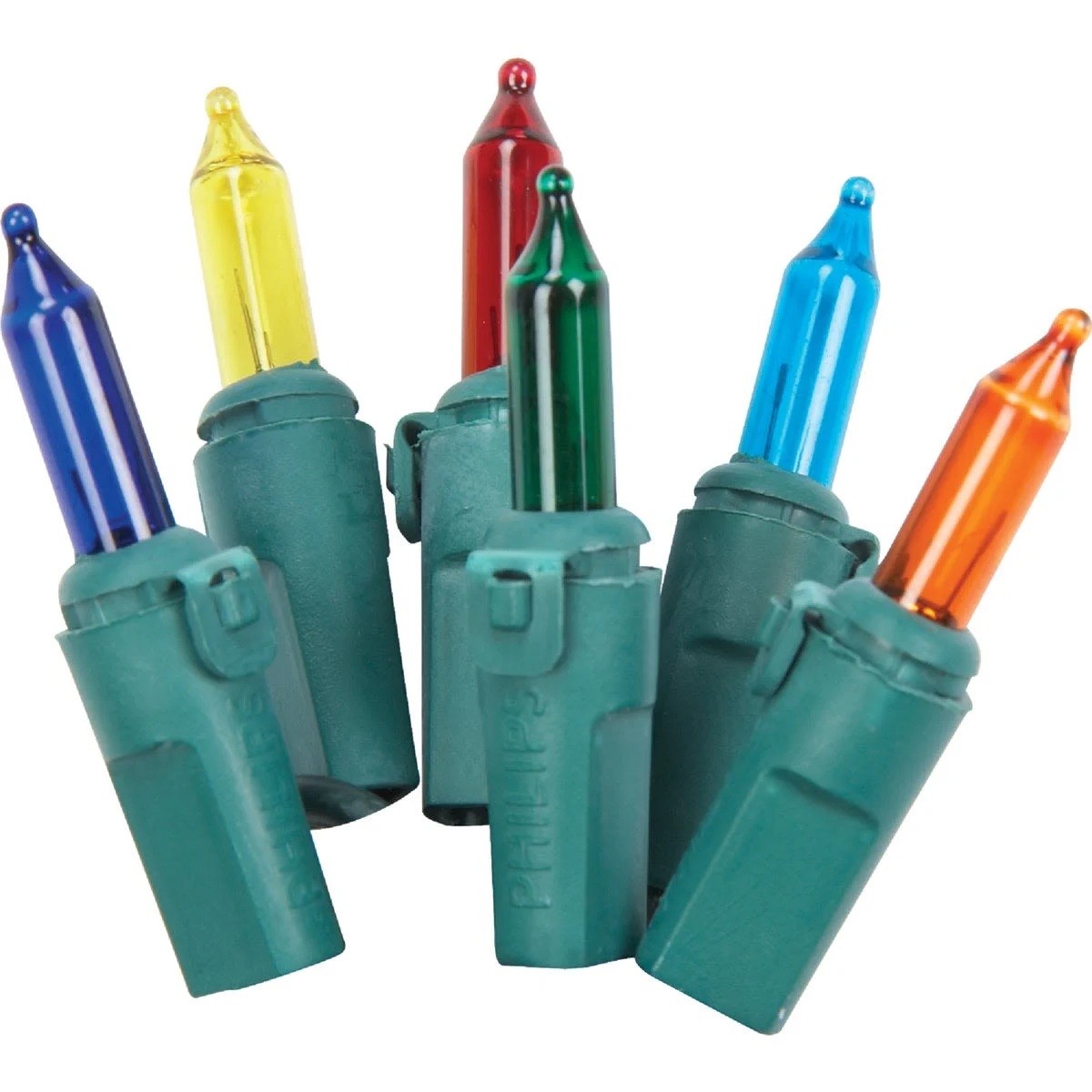Miniature light set. 8 functions with memory. 24" lead wire, 3.5" spacing. Indoor/outdoor use. No. 2697-02: Bulb Type: Incandescent, Lights Per String: 150 Lights, Feature: Chasing, Bulb Color: Clear, Wire Color: Green, Total Length: 45.75', Lighted Length: 43.75' No. 2697: Bulb Type: Incandescent, Lights Per String: 150 Lights, Feature: Chasing, Bulb Color: Multi, Wire Color: Green, Total Length: 45.75', Lighted Length: 43.75'