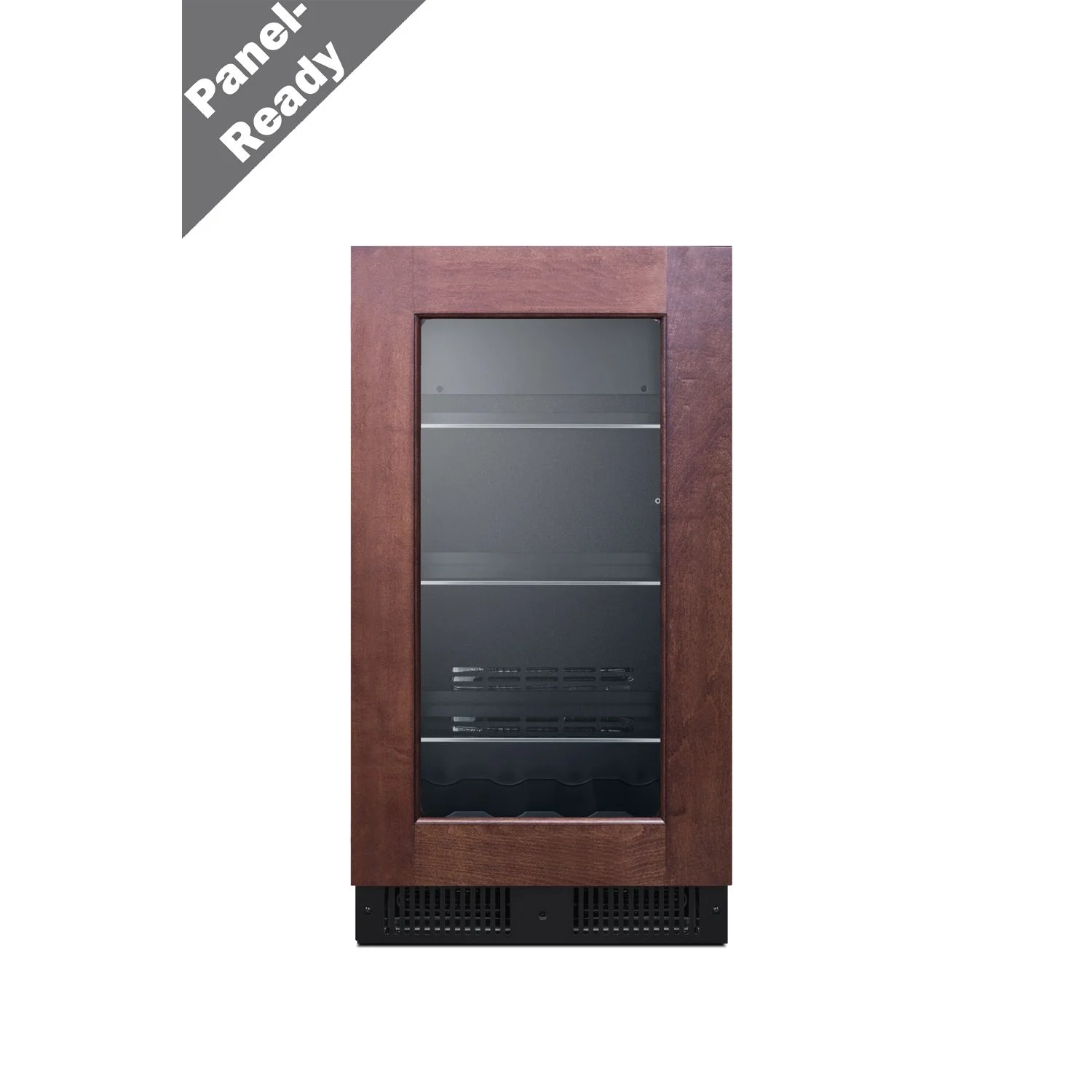 Summit's assortment of undercounter beverage centers includes uniquely sized 18" wide choices designed for reliable storage in commercial environments. The CL181WBVPNR is an 18" wide beverage center that is ETL-S listed to NSF-7 commercial standards. The front breathing design allows built-in installation under counters, while the fully finished cabinet in a jet black finish also enables freestanding use. This unit includes a fully articulating European-style hinge and 2-piece bracket kit that lets you easily install overlay panels over the door trim to create a custom look. The double pane tempered glass door provides a full view of stored contents. Inside, white LED lighting located on the side walls complements the black interior for an attractive presentation that highlights stored products. A lock is located in the kickplate for convenient security. The CL181WBVPNR includes three adjustable glass shelves for spill-proof storage. The floor is specially slotted to hold wine bottles in place. The interior control panel includes a digital thermostat for easy and intuitive operation, with a readout viewable in Celsius or Fahrenheit. Additional features include a user-reversible door, right angle plug for added space savings, sealed back design for easier cleanup, and a Sabbath mode setting. A built-in alarm audibly warns if the door is left ajar or if the unit exceeds recommended temperature, an ideal feature for busy commercial settings.Uniquely styled and fully featured, the CL181WBVPNR is an elegant solution to bringing reliable beverage storage to restaurants, bars, waiting areas, hotel lobbies, and other spaces. For a matching wine cellar, see CL18WCPNR.