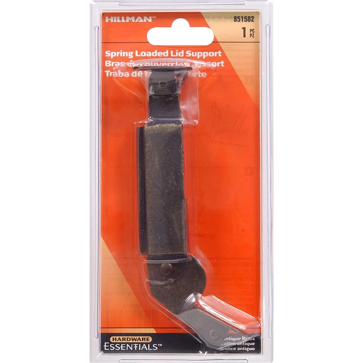 Hillman Antique Brass Spring Assisted Lid Support, Center Mount