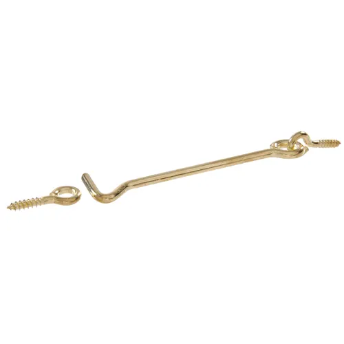 A gate hook and eye are great for light duty closures. Often used in the yard to close a light gate or shed. Solid brass material.