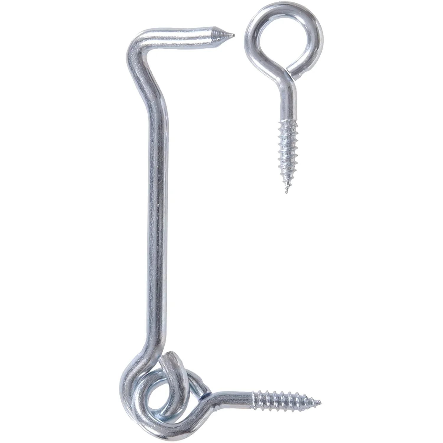 Gate Hooks can be used to latch gates or doors. They have sharp eye points that can bite into wood easily and quickly. The screw eyes can help stabilize the gate hook and provide long-lasting hold.
