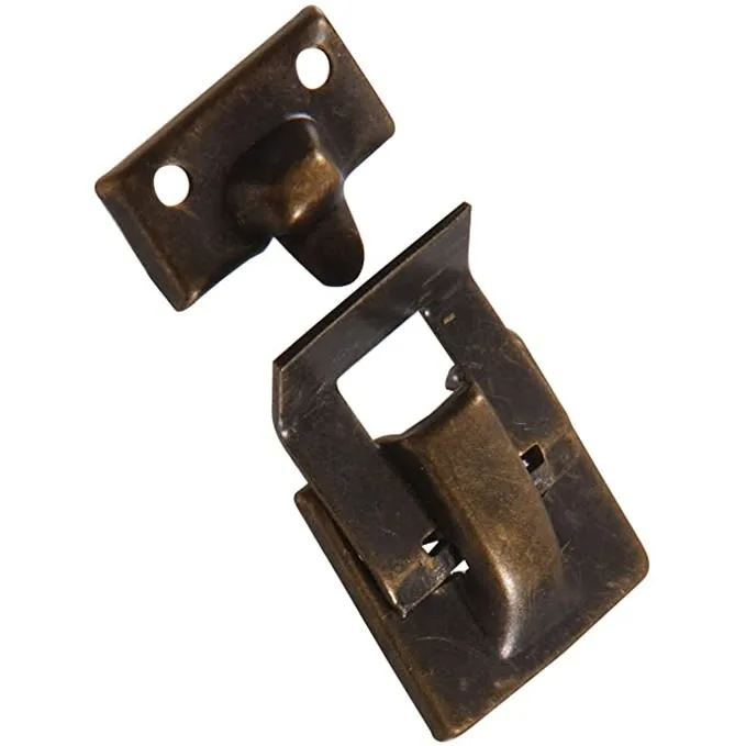 Mini Decorative Catch secures chests, closet, pantry, cabinet doors, etc. Surface mounted for easy installation. Solid brass material provides a decorative appearance.