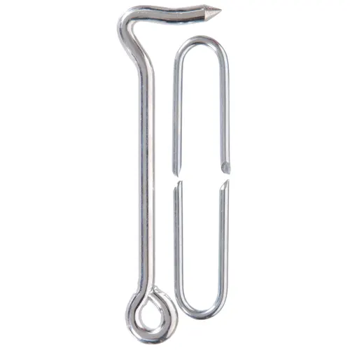 Gate Hooks can be used to latch gates or doors. They have sharp eye points that can bite into wood easily and quickly. The staple can help stabilize the gate hook and provide long-lasting hold.