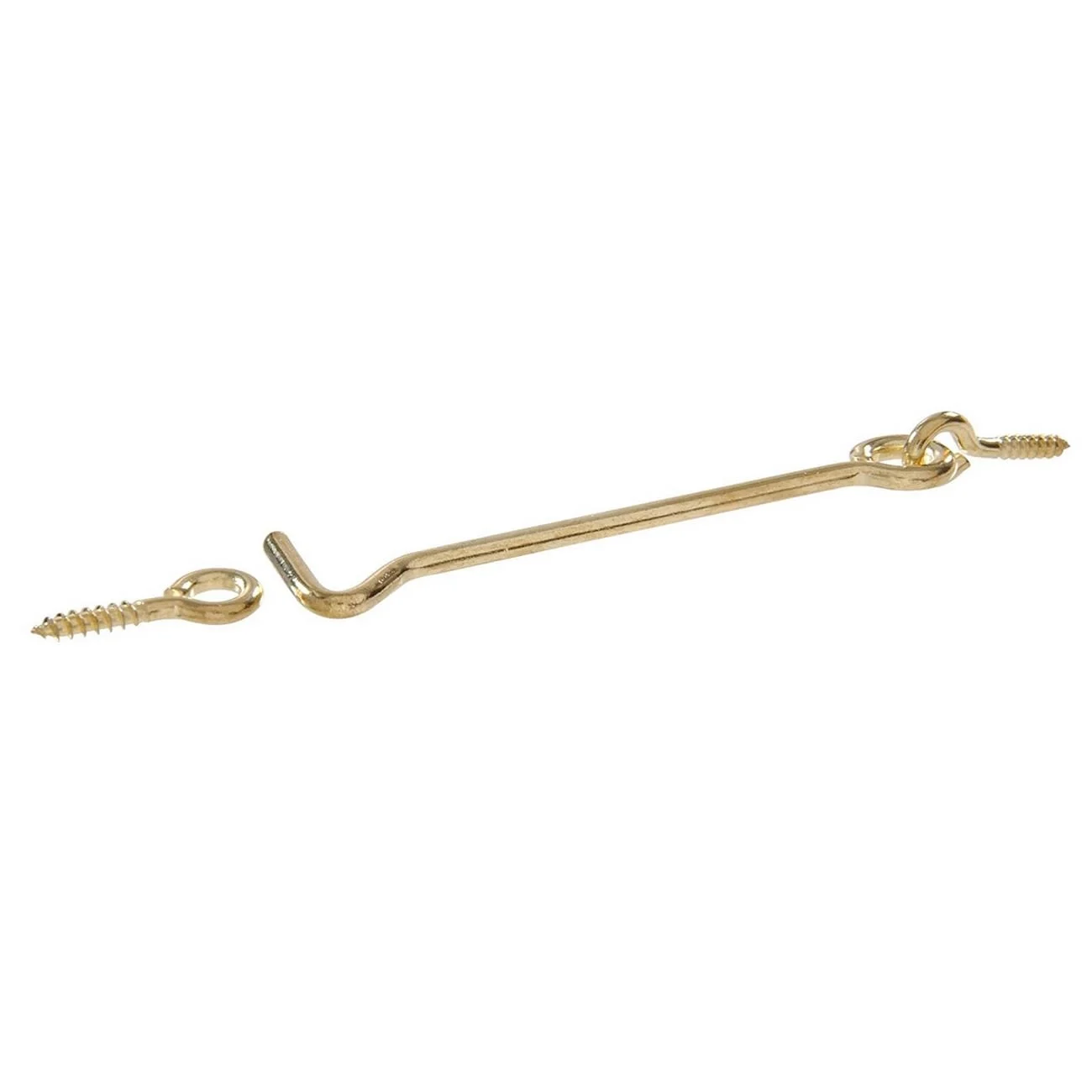 A gate hook and eye are great for light duty closures. Often used in the yard to close a light gate or shed. Solid brass material.