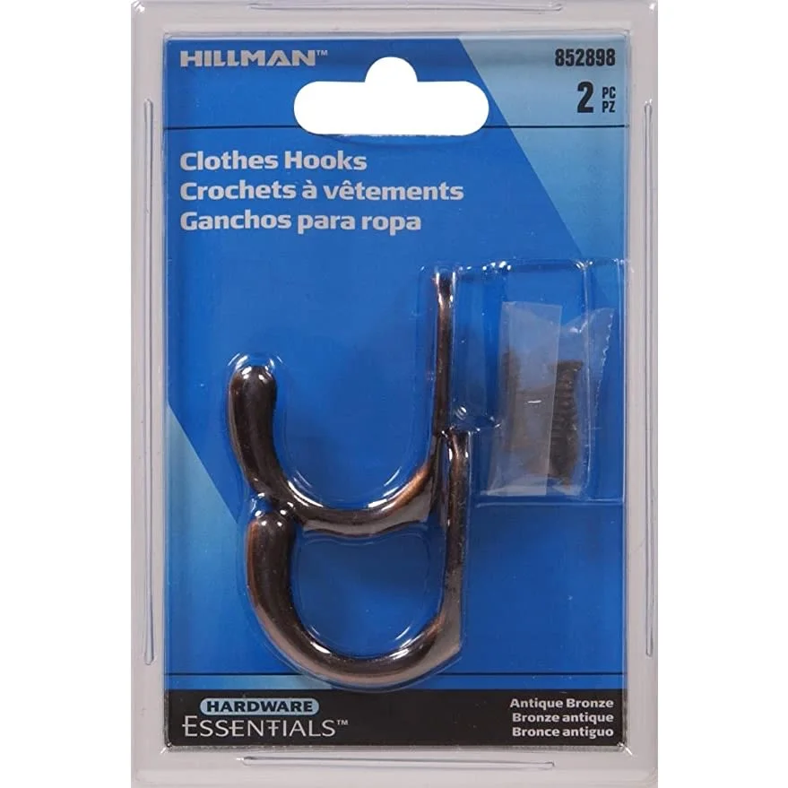 Clothes Hooks are designed to mount on a door or wall to hold coats, hats, or other garments. They are ideal for use in bedrooms, bathrooms and closets. Easy to install. Includes mounting hardware.