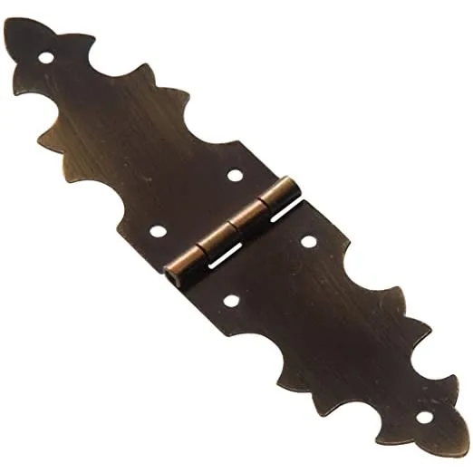 This Decorative Hinge is used to fasten and complement chests, jewelry boxes, crafts, and hobby projects. Surface mounted for easy installation. Solid brass material provides a decorative appearance.
