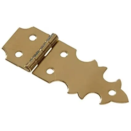 This Decorative Hinge is used to fasten and complement chests, jewelry boxes, crafts, and hobby projects. Surface mounted for easy installation. Solid brass material provides a decorative appearance.