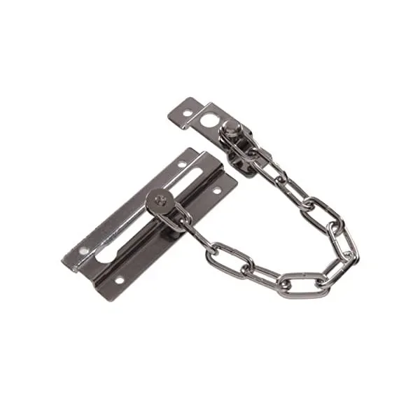 The Security Door Chain features a hardened steel chain to help secure your door while allowing viewing and ventilation. Chain can be placed in incorporated resting slot when not in use. They are easy to install and include mounting hardware.